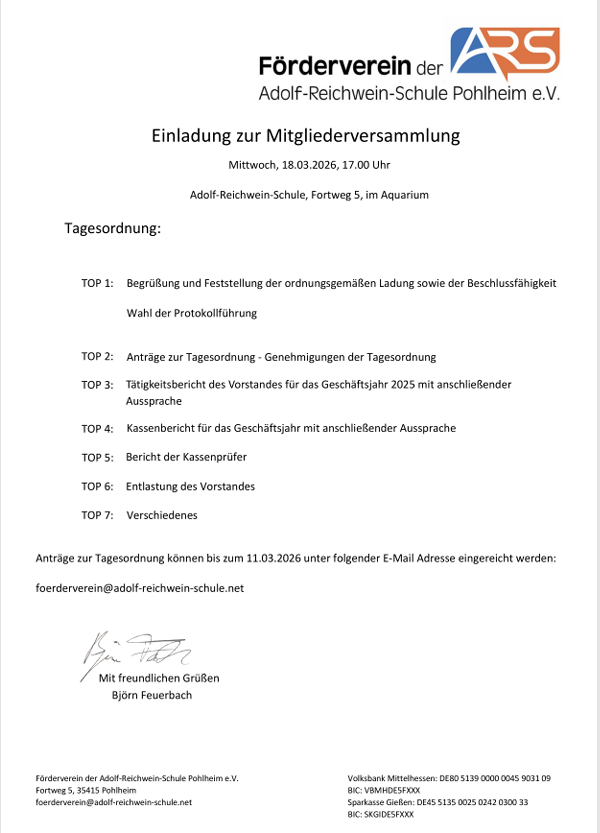 Herzlich willkommen an der ARS – wir freuen uns sehr, dass ihr jetzt dazugehört!