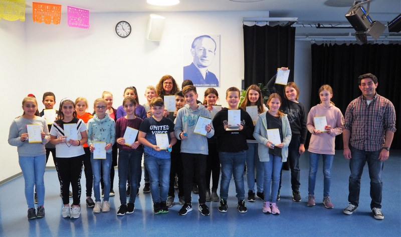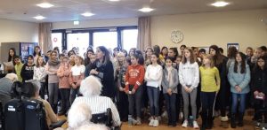 In der Vorweihnachtszeit haben der Chor sowie eine Musikpraxis-Lerngruppe mit ihren Lehrerinnen Gitty Feriduni und Lisa Ludwig wieder Musik in das Alloheim gebracht. Mehr als 80 Schülerinnen und Schüer sangen die Lieder „Halleluja“, „Suzi Snowflake“, „We are the world“ sowie „Feliz Navidad“ und die Schüler des Musik-Praxiskurses trugen den Weihnachtsrap „HO, HO, HO“ vor.