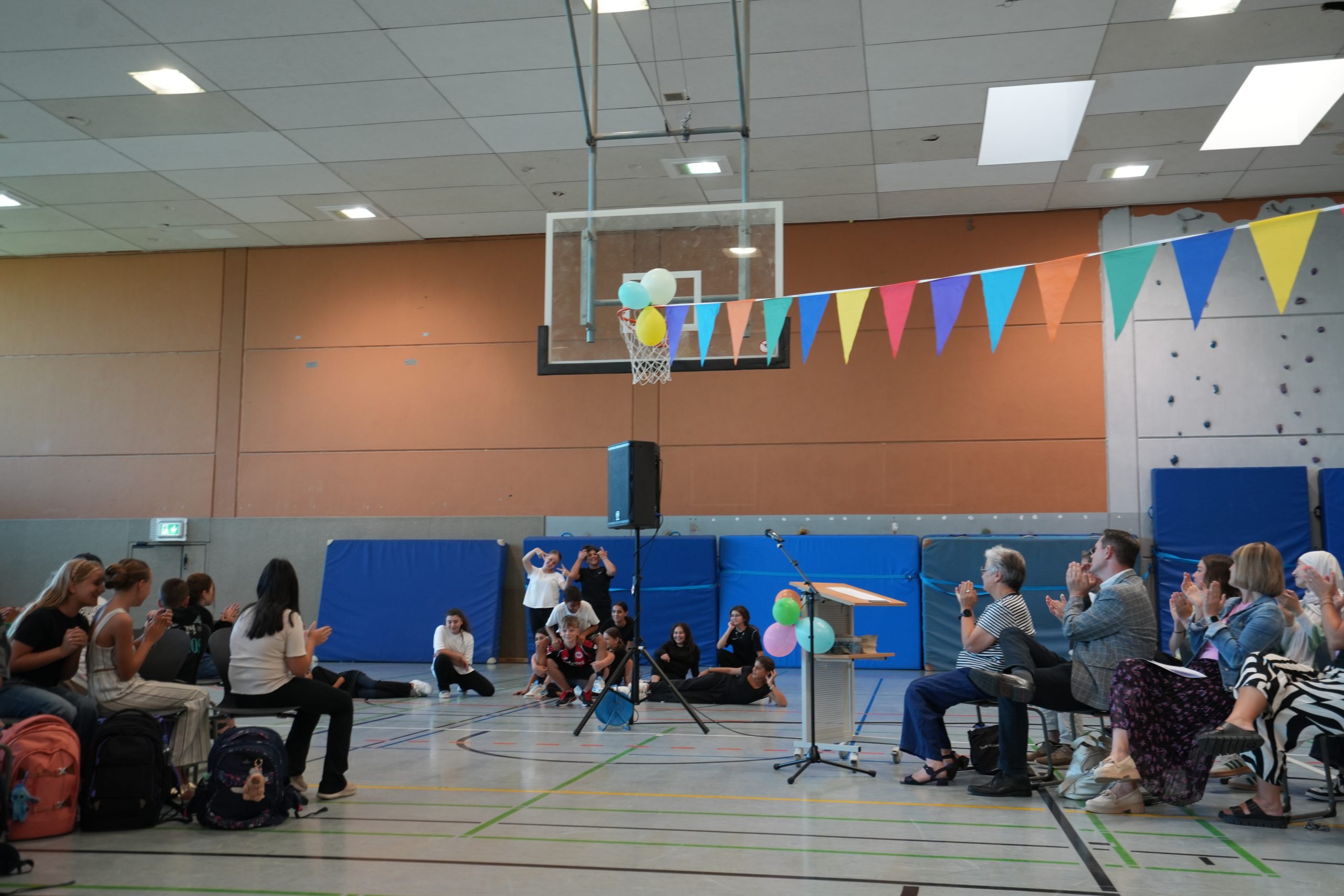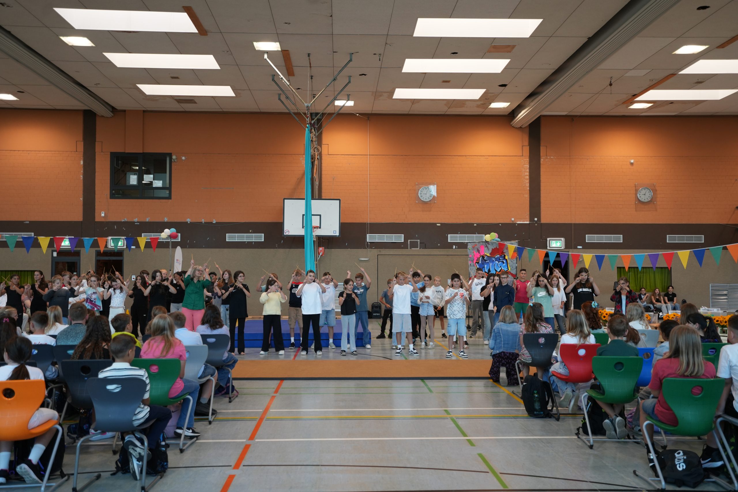 Die Feier zeigte eindrucksvoll den Zusammenhalt der Schulgemeinschaft: Ältere Schülerinnen und Schüler hießen die neuen Fünftklässler nicht nur herzlich willkommen, sondern stellten gleichzeitig die Vielfalt des Schullebens vor.