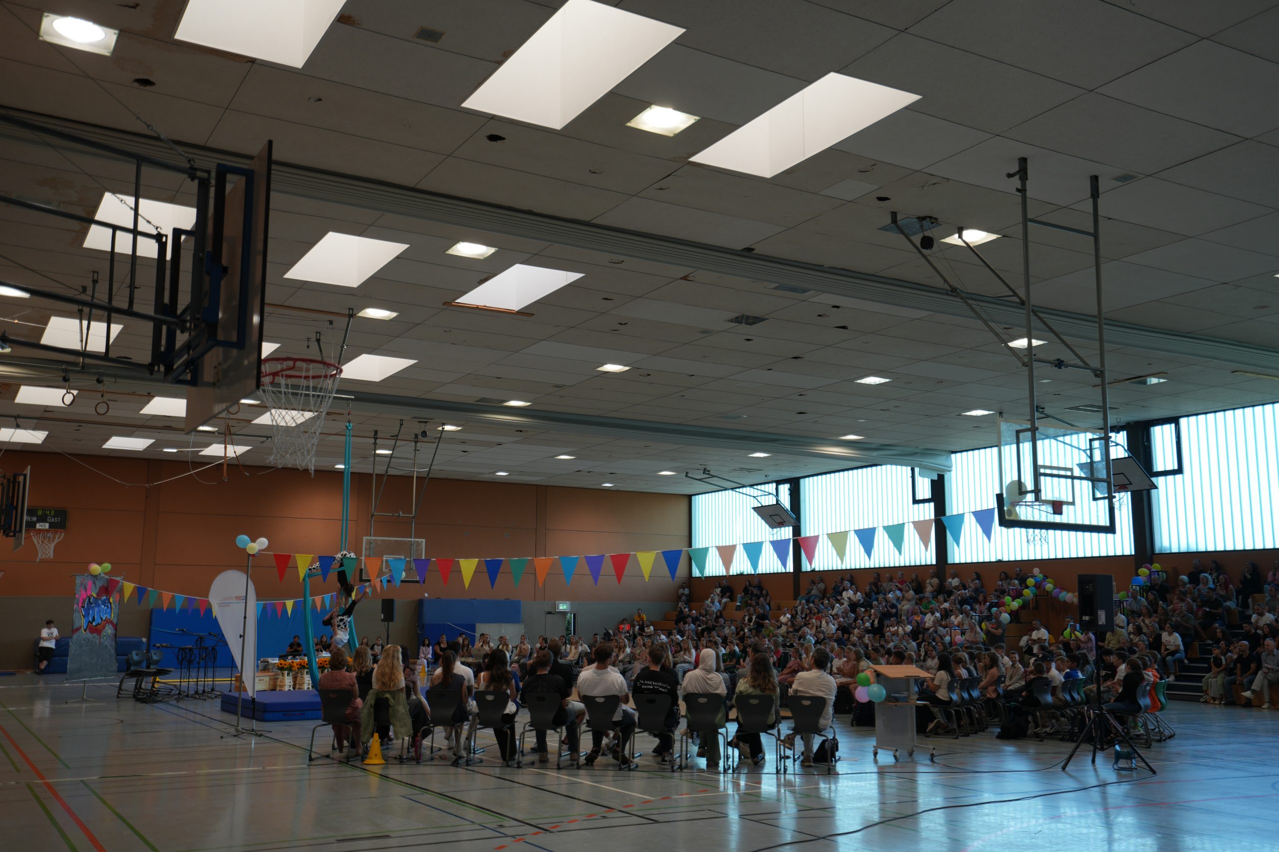 Stimmungsvoll und voller Vorfreude begann am Dienstagvormittag für 126 neue Fünftklässlerinnen und Fünftklässler der ARS ein neuer Lebensabschnitt. In der festlich geschmückten Sporthalle hieß Schulleiterin Petra Brüll ihre jüngsten Mitglieder bei der traditionellen Einschulungsfeier willkommen.