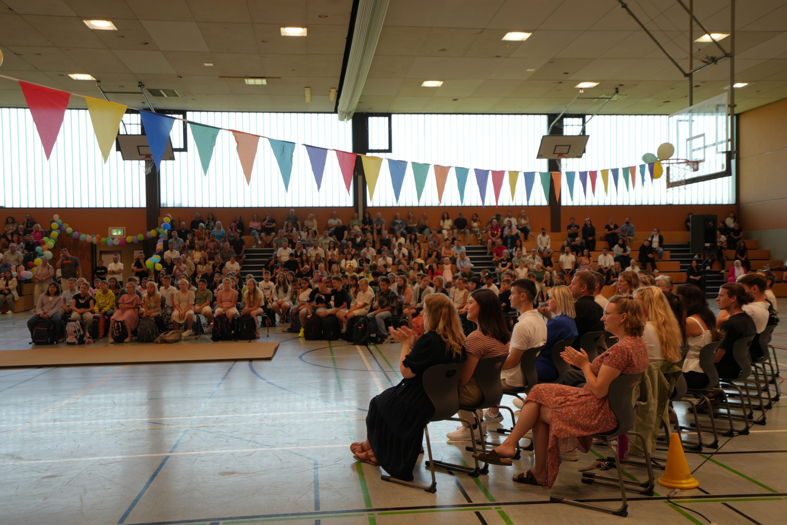 Der mit Spannung erwartete Moment kam schließlich bei der Klasseneinteilung: Unter großem Applaus erhielten die neuen Schülerinnen und Schüler ihre Zuteilung in die fünf Parallelklassen.