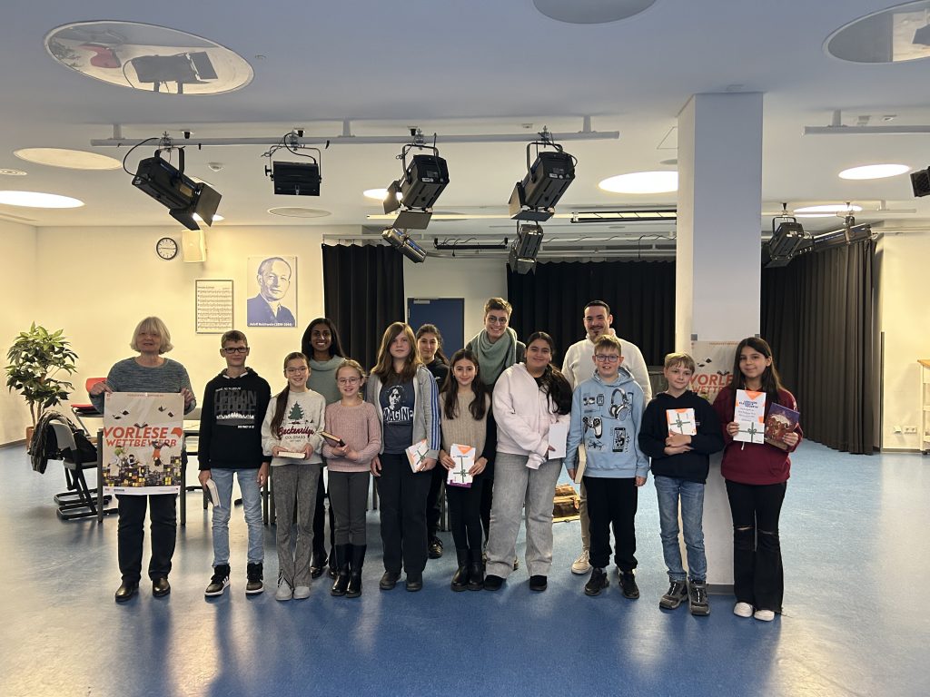 Wie es schon seit Jahrzehnten Tradition ist, so wurde auch in diesem Jahr der Vorlesewettbewerb durchgeführt – das Finale fand am 04.12.2025 in der Aula statt, wobei die Klassensiegerinnen und Klassensieger von ihren Mitschülerinnen und Mitschülern lautstark unterstützt wurden.