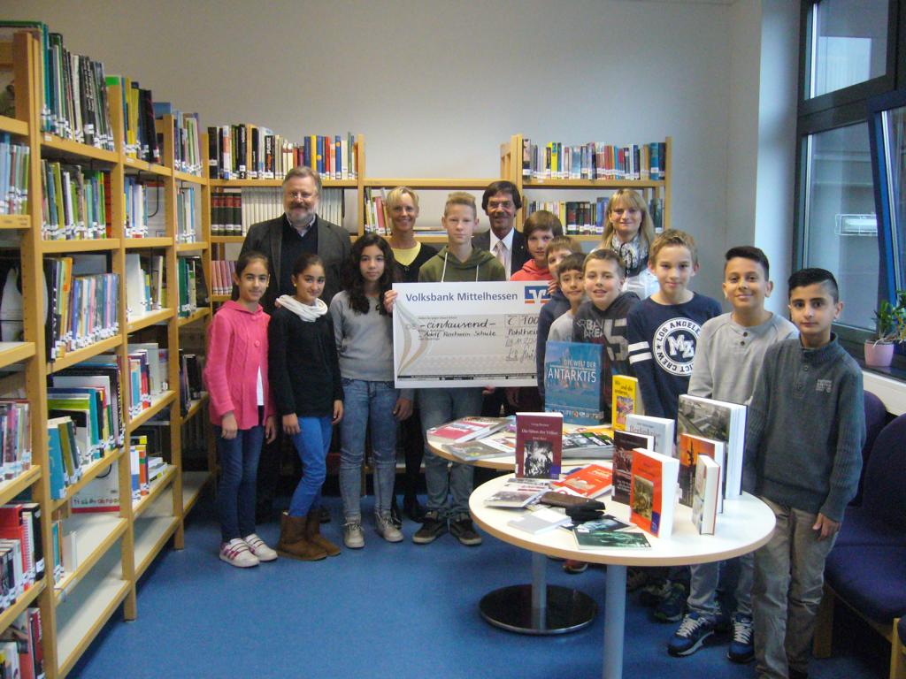 Einen weiteren Beweis der Verbindung von Stadt und Schule lieferte kürzlich der Besuch von Bürgermeister Karl-Heinz Schäfer in der Mediathek der ARS. Denn Karl-Heinz Schäfer kam nicht mit leeren Händen, sondern überbrachte der Schule eine Spende von 1.000 Euro zur Förderung von Koordinationsprojekten in Zusammenarbeit mit der Stadt Pohlheim.