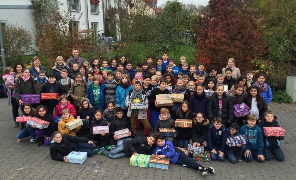 Da kam eine Initiative wie „Weihnachten im Schukarton“ gerade recht. So packten Schülerinnen und Schüler des Jahrgangs 5 gemeinsam mit ihren Lehrerinnen insgesamt 30 Schuhkartons mit Kleidung, Zahnbürsten, Malstiften, Spielsachen, Kuscheltieren und Süßigkeiten und brachten sie an die Abgabestelle in Hausen, wo sie von Nicole Witzel vom Verein Geschenke der Hoffnung e.V. entgegengenommen wurden.