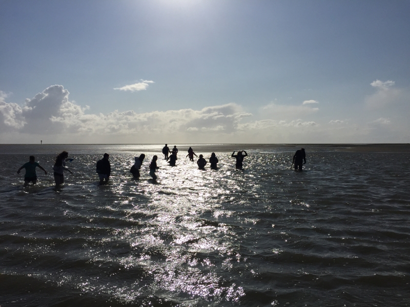 Die Schülerinnen und Schüler machten eine Wattwanderung, bei der sie von einem Wattführer alles Wissenswerte über die Gezeiten erfuhren und Wattwürmer ausgraben durften. Im Multimar Wattforum in Tönning wurde dies noch einmal mit Hilfe von einer „Forschertour“ vertieft.