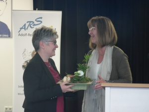 In Petra Brülls Ansprache an die geladenen Gäste und das Kollegium skizzierte die überzeugte IGSlerin ihren eigenen Werdegang und beschrieb in humoriger Art und Weise ihr umfangreiches, vielfältiges und tolles Berufsbild einer Schulleiterin. Sie betonte, was für sie Merkmale einer guten Schule sind:neben guten Leistungen müsse es auch ganz zu allererst um Wertschätzung und gegenseitigen Respekt gehen. Außerdem betonte sie die Wichtigkeit von Heterogenität: „Heterogenität ist für mich und hoffentlich für alle anderen hier ein Gewinn und zwar auf allen Ebenen: Bei den Schülerinnen und Schülern, im Kollegium und in der Schulleitung. Homogenität ist übrigens eine Fiktion, denn jeder Mensch lernt und arbeitet anders.“ Auch in Zukunft stehe ihre Tür für alle Sorgen und Nöte, Ideen und Anregungen so oft es geht offen und sie lud alle zum Mitdenken und Mitmachen bei der Entwicklung der Schule ein. Dabei dankte sie dem Kollegium, den Eltern und allen weiteren Mitarbeitern der ARS für die bisherige Unterstützung und hofft auf weiterhin gute Zusammenarbeit.