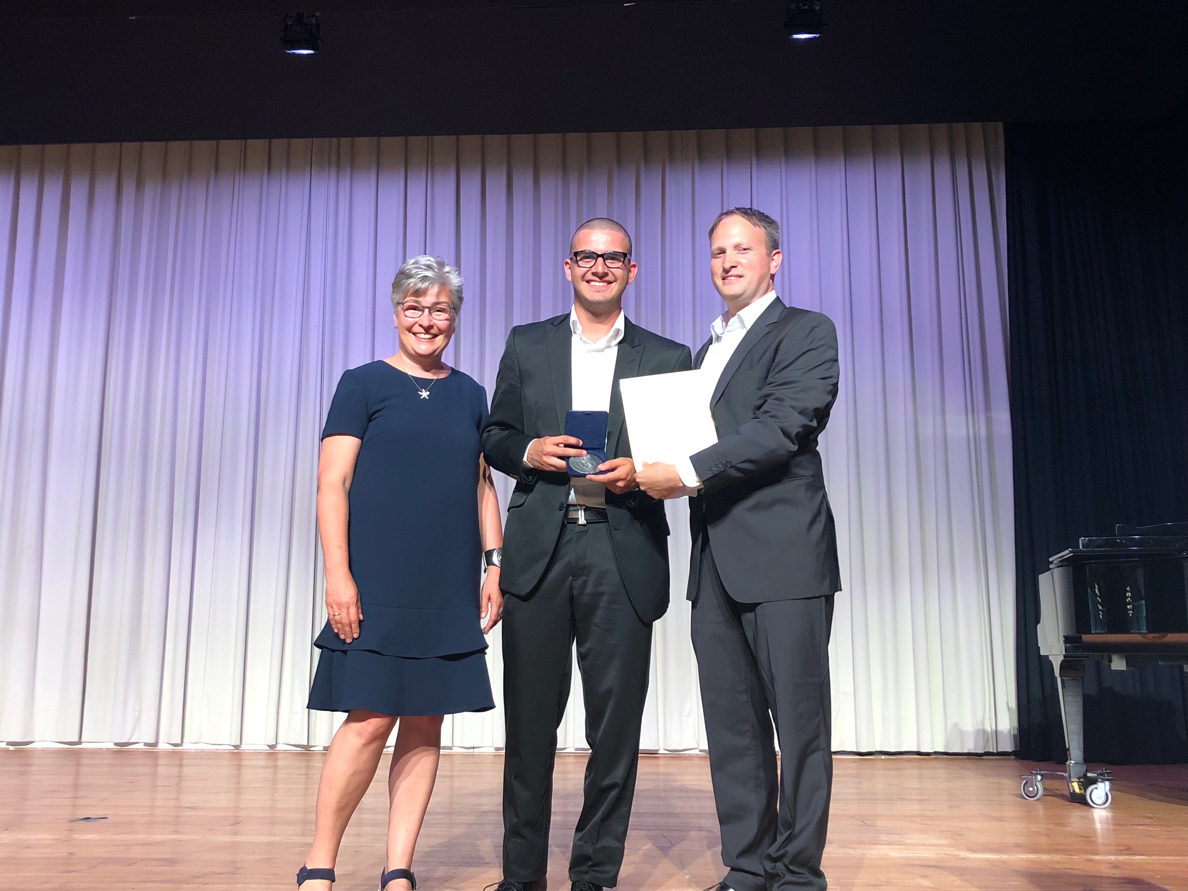 Eine besondere Auszeichnung erhielt Benjamin Hanna für seine besonderen Leistungen und Engagement im Fach Sport. Ralf Kuczera überreicht ihm die Pierre de Coubertin -Medaille, die in Hessen im letzten nur 47-mal verliehen wurde.