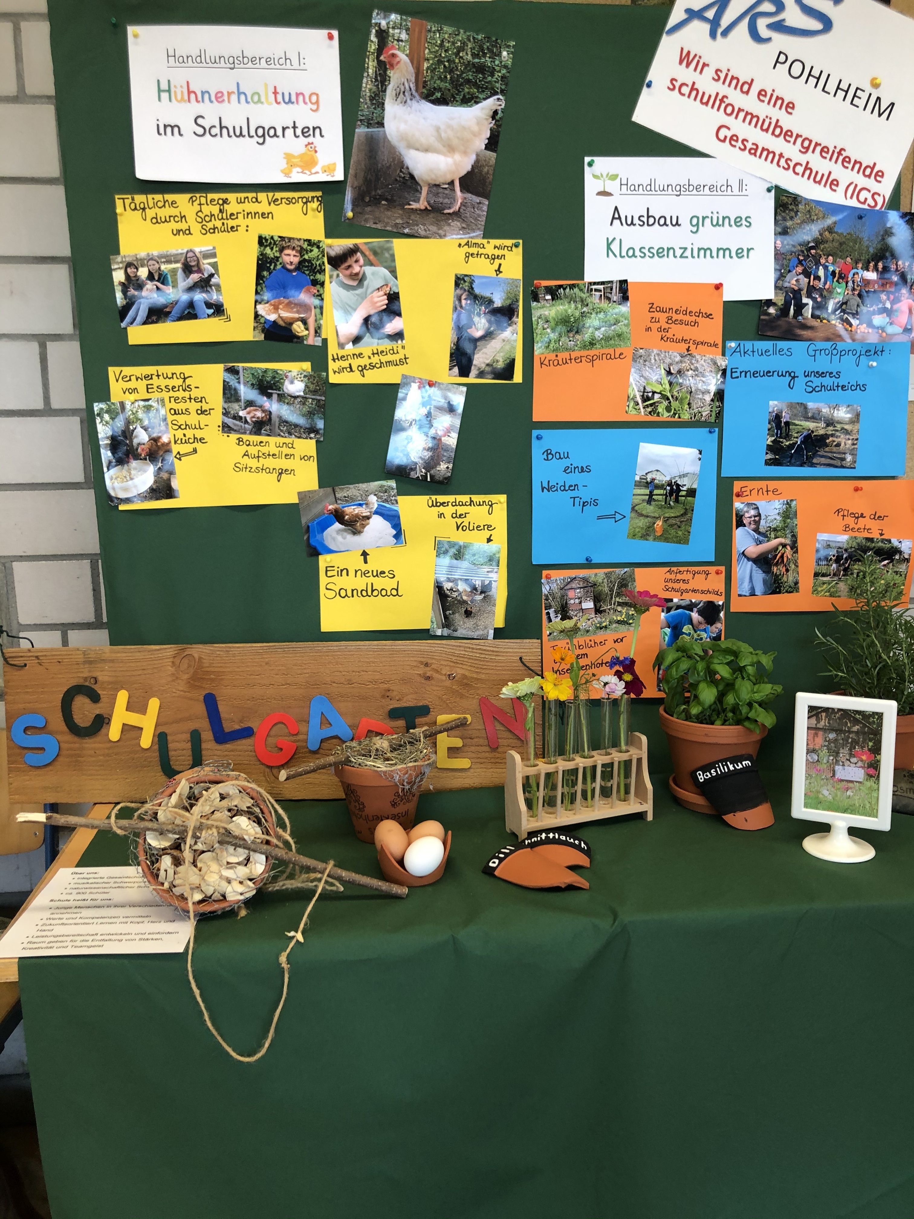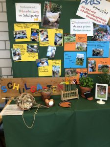Bei einer Ausstellung konnte sich die Umwelt AG mit einem Stand präsentieren und es bestand die Möglichkeit mit anderen Schulen in den Austausch zu kommen. Besonderes Interesse fanden natürlich unsere Hühner und die Kräutersamen aus unserem Schulgarten. Den Stand der ARS betreuten Maximilian Baier und Henni Stumpf.