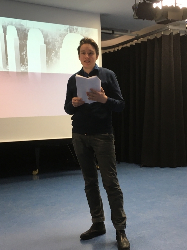 Anlässlich des Internationalen Holocaustgedenktages zum 75. Jahrestages der Befreiung des Vernichtungslagers Auschwitz-Birkenau hat Philipp van Slobbe vor den Jahrgängen 9 und 10 der Adolf -Reichwein – Schule und Gästen von seinem Internationalen Freiwilligendienst im Altenheim Beth Shalom in Amsterdam mit Aktion Sühnezeichen berichtet. Im Mittelpunkt stand seine Freundschaft zu Alida Fles-Vos, die als Kind Bergen Belsen überlebte, während ihre Eltern ermordet wurden. Eindrücklich schilderte er den Jugendlichen, wie er als deutscher Freiwilliger anfänglich die Ablehnung der Jüdin erlebte und wie sich ihre Begegnung im Laufe der Zeit in eine freundschaftliche Beziehung bis zu ihrem Tod im Januar 2019 wandelte. Von den Bewohnern des Altenheims, von denen eine große Zahl die Besetzungszeit der Niederlande versteckt oder in Konzentrationslagern verschleppt, überlebt haben, wurde Philipp van Slobbe aufgefordert, ihre Geschichten und die Geschichten ihrer vernichteten Familien in Deutschland zu erzählen und vor Rassismus zu warnen. Er macht darauf aufmerksam, dass die Zeit mit Zeitzeugen in Kontakt zu kommen, knapp wird, weil viele versterben.