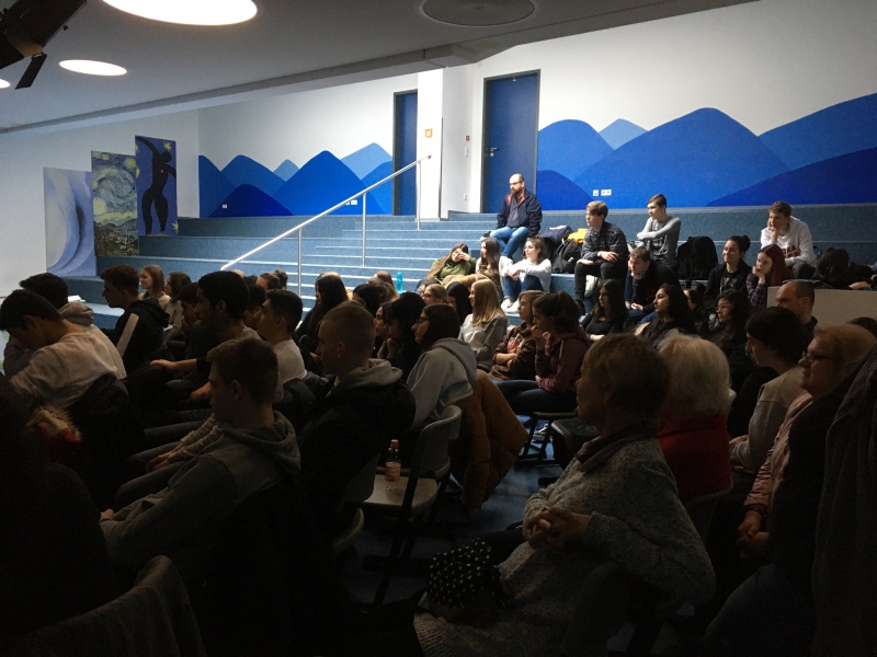 Die Schulleiterin dankte Philipp van Slobbe und machte die Schülerinnen und Schüler darauf aufmerksam, dass man in einer globalisierten Welt leider feststellen muss, dass es auch heute in einigen Ländern Konzentrationslager und schlimmste Unterdrückung von Minderheiten gibt. Man sollte aufmerksam bleiben und den Anfängen wehren.