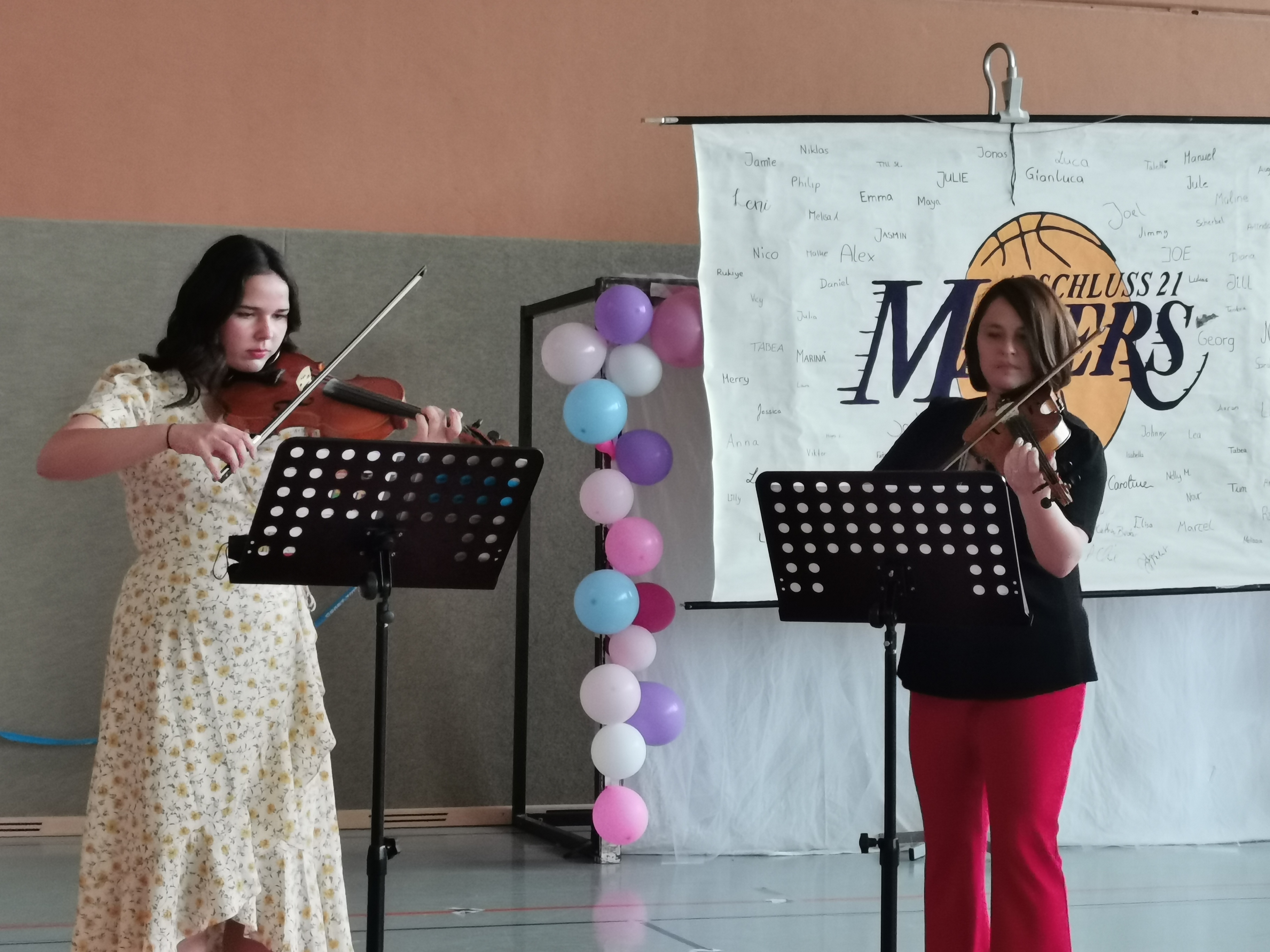 Im Rahmen von kleinen Präsentationen skizzierten die Schülerinnen und Schüler ihren gemeinsamen Werdegang an der ARS und bedankten sich bei Ihren Lehrkräften für die durch sie erfahrene Unterstützung auf ihrem Weg zum Schulabschluss. Auch die Klassenlehrkräfte verabschiedeten sich durch eine Rede bei ihren Klassen, Frau Ludwig griff kurzerhand zur Gitarre und trug ein bewegendes Lied für ihre Klasse vor. Umrahmt wurden die beiden Abschlussfeiern durch musikalische Beiträge der Schülerinnen Taletta Kosaca, Elisa Kellnberger und Theodora Cil sowie Frau Kosaca, Frau Kissel, Frau Becker und Herrn Sennhenn.
