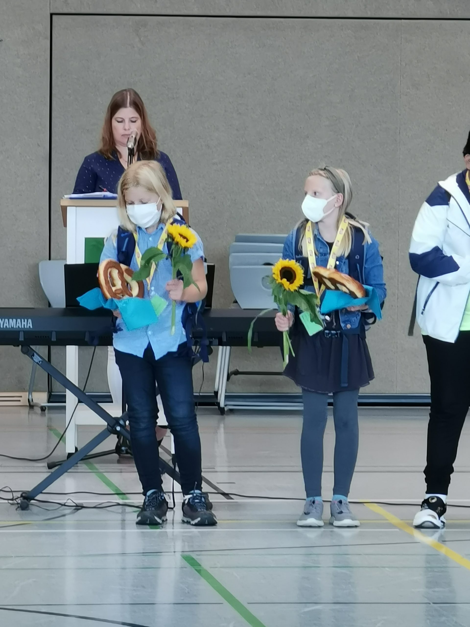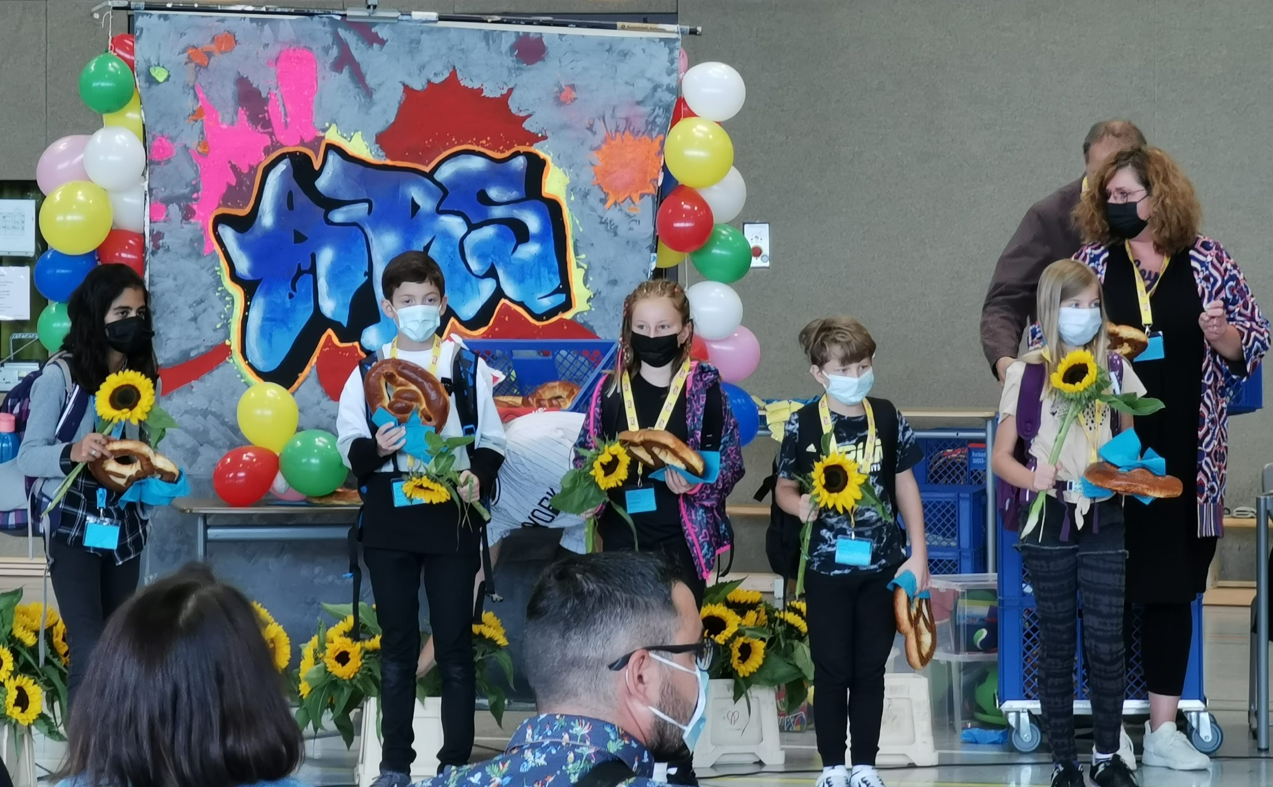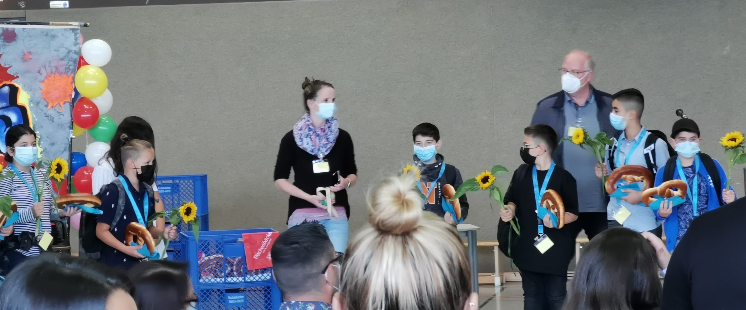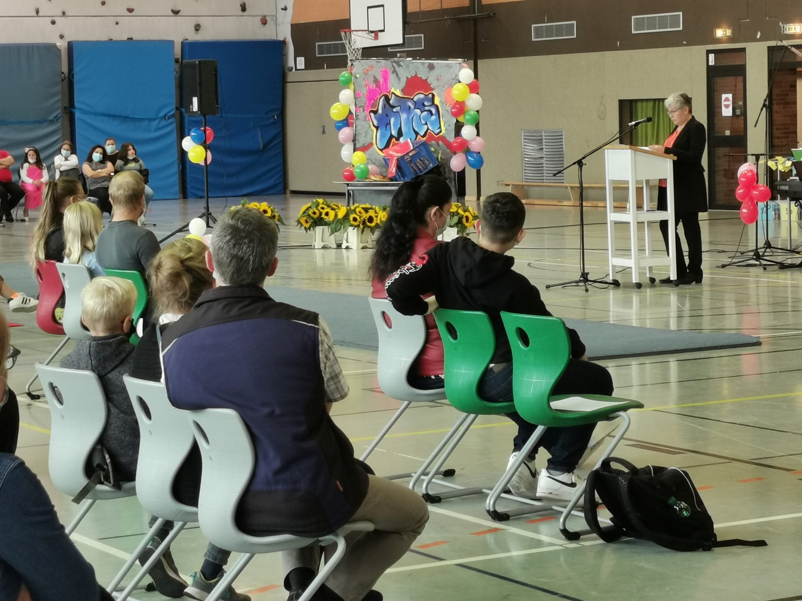 Ein besonderer Dank geht an die Stadtwerke Gießen, die in Zusammenarbeit mit der Bäckerei „Rockenbäcker“ die Einschulungsbrezeln gespendet haben und an den Förderverein der ARS, der für jede Klasse eine Pausenkiste mit Spielgeräten zur Verfügung gestellt hat.