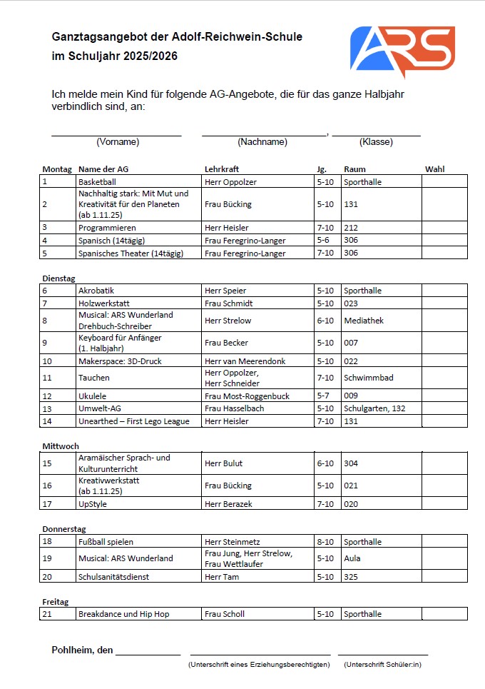 Ganztagsangebot Schuljahr 2025/26: