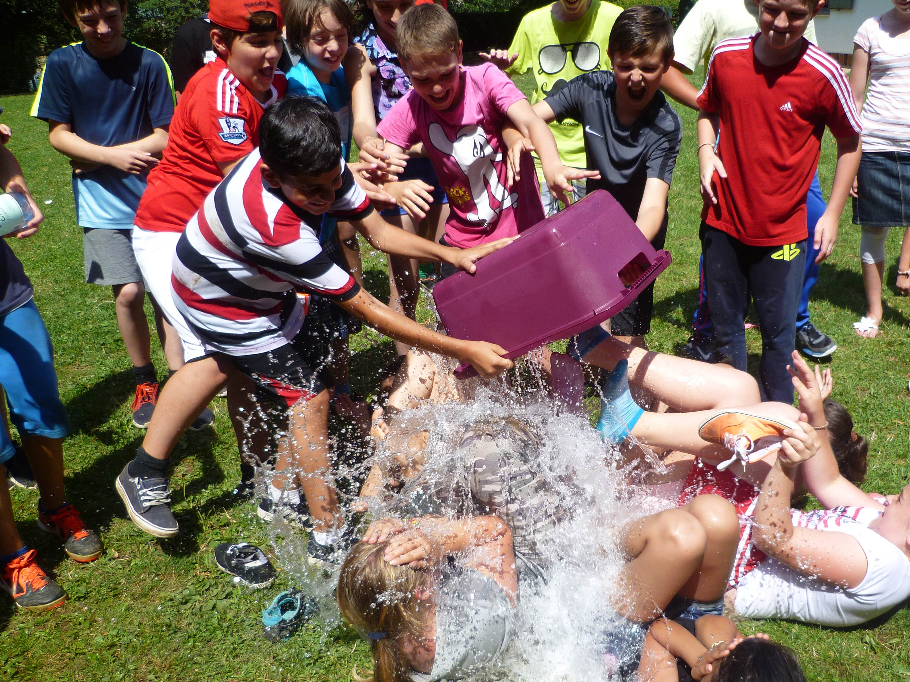 Dort wurden eine Menge Teamspiele durchgeführt, darunter Fröbel-Kran, Murmelbahn im Wald und Kooperationsspiele. Und da das Wetter mitspielte waren auch die beliebten Wasserspiele möglich.